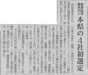 健康経営優良法人 2017年2月22日 最終更新日時 : 2024年8月28日 wpmaster 2017年2月22日(水)付の上毛新聞にて、弊社が「健康経営優良法人2017」に認定されたことについて、記事が掲載されました。