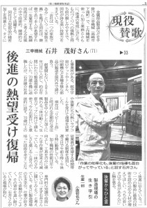 2020年1月8日(水)付の上毛新聞にて、「現役賛歌」と題して弊社石井さんが掲載されました。