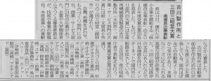 県優良企業表彰 2017年2月16日 最終更新日時 : 2024年8月28日 wpmaster 2017年2月16日(木)付の上毛新聞にて、弊社が2016年度「県優良企業表彰」の優秀賞を受賞したことについて、記事が掲載されました。